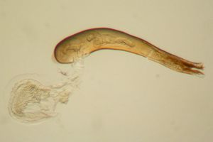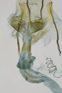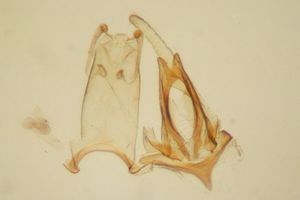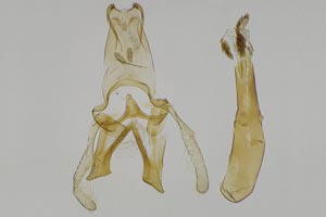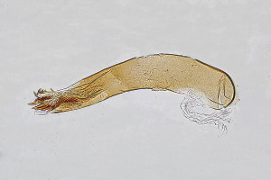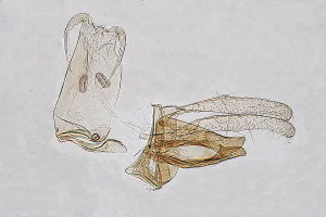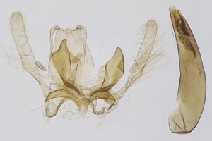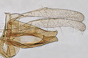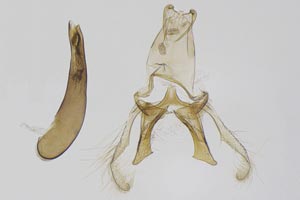 1-3: Genitalpräparat mit Anelluslappen [2] und Aedoeagus [3], ♂, Deutschland, Baden-Württemberg, 78176 Blumberg, Ortsrandlage, Südhang, in Waldnähe (Buchen-Mischwald, Waldrand mit anschließendem Trespen-Halbtrockenrasen auf Kalk), 720 m, am Licht, 22. Mai 2012 (leg., präp. & Foto: Hans-Peter Deuring), det. Friedmar Graf, Uwe Büchner & Hans-Peter DeuringForum
