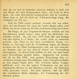 Fuchs (1881) fiel auf, dass seine Säcke, die er an zwei Kirschbäumen im Rheingau gefunden hatten, von denen von C. badiipennella abwichen - daher beschrieb er die neue Art.