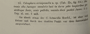 - Glaser, W. (1980): Beitrag zur Kenntnis der Coleophoridae XI. Zur Synonymie von Coleophora serinipennella Christoph, 1872 und Coleophora novella Chrétien, 1926. — Zeitschrift der Arbeitsgemeinschaft Österreichischer Entomologen 31 (3/4): 78-80. [PDF auf zobodat.at]