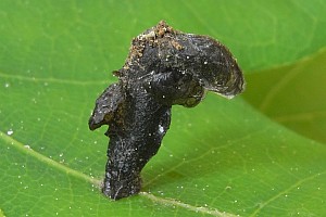 [Bladmineerders.nl (abgefragt 24. Mai 2021)] lässt zur Raupe wissen: "Polyphagous on woody plants. Betula; Carpinus betulus; Corylus avellana; Fagus sylvatica; Malus; Prunus cerasus, spinosa; Pyrus communis; Quercus petraea, robur, rubra; Salix cinerea; Sorbus aucuparia. It seems that the spectre of hostplants differs from one region to the other. Most authors mention Carpinus, Corylus, and Quercus, but Emmet ao (1969a) do not mention Corylus for Britain; but they do mention Salix, that among the continental authors is mentioned only by Schütze (1931a). For Suire (1961a) the primary host plant is Betula; no one else mentions that plant." Konkret gezeigt werden hier Säcke an Quercus robur, Quercus rubra und Salix cinerea, erstere aus Belgien, die anderen aus den Niederlanden.