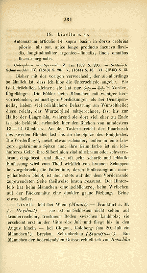 - Stainton, H. T. (1859): The natural history of the Tineina 4: I-IX, 1-292, pl. I-VIII. London (John van Voorst) – Paris (Deyrolle) – Berlin (E. S. Mittler und Sohn). — Digitalisat auf archive.org: [132-141], [pl. III fig. 2].