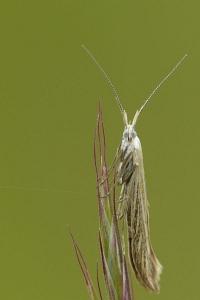Nach Hinweis von Jukka Tabell lebt die Jungraupe im Herbst zunächst an Wiesensalbei (Salvia pratensis). Nach der Überwinterung miniert sie in Gräsern (Poaceae). Baldizzone (2019: 318) nennt: "Briza spp., Bromus spp., Dactylis spp., Holcus spp."