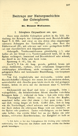 - Erstbeschreibung: Hofmann, O. (1869): Beiträge zur Naturgeschichte der Coleophoren. — Entomologische Zeitung 30: 107-122. Stettin.