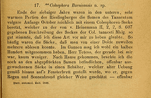 - Lectotypus-Festlegung: Baldizzone, G. (1991): Contribuzioni alla conoscenza dei Coleophoridae. LXIII. Coleophora bornicensis Fuchs, 1886 (Lepidoptera, Coleophoridae). — Museo Regionale di Scienze Naturali Bollettino 9 (2): 307-312.