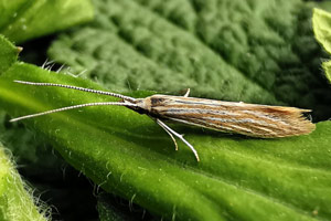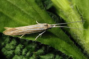 Zur Unterscheidung von C. albilineella und C. bucovinella ein Zitat aus der unten angeführten Literatur (Baldizzone & al., 2006): “In female genitalia distinguishing characters are above all the shape of sterigma and posterior apophyses: in pseudodianthi the sterigma is 2,5-3 times, in bucovinella 1,5 times, in dianthi 1,25 times and in albilineella 1,1 times longer than wide. Apical fourth of posterior apophyses is abruptly thinned and arched in bucovinella and albilineella, in pseudodianthi and dianthi it is straight and gradually attenuated.”