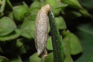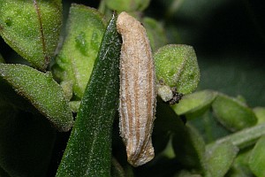 6: Deutschland, Thüringen, Maua bei Jena, Wegrand im Offenland, Raupenfund am 27. September 2009 an Fruchtständen von Melde (Atriplex, vermutlich oblongifolia) (Foto nach Falterschlupf am 15. Juli 2011: Heidrun Melzer), gehört zu Falter B