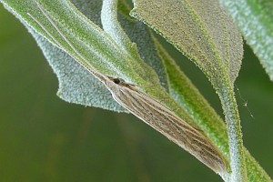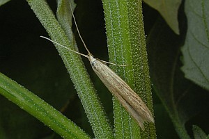9: ♂, Falter B, Deutschland, Sachsen, Doberschütz, Ruderalfläche am Waldrand, Raupensäcke an Samen von Melde (Atriplex oblongifolia) 24. Oktober 2010, e.l. 15. Juli 2011 (leg., cult. & Foto: Heidrun Melzer), gen. det. Christian Kaiser