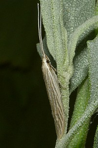8: ♂, Falter A, Deutschland, Sachsen, Doberschütz, Ruderalfläche am Waldrand, Raupensäcke an Samen von Melde (Atriplex oblongifolia) 24. Oktober 2010, e.l. 27. Juni 2011 (leg., cult. & Foto: Heidrun Melzer), det. Christian Kaiser