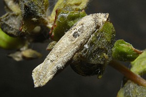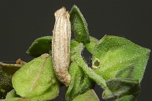1-3: Raupensack (von Klappenende bis Mundansatz ca. 7,5 mm lang), Deutschland, Thüringen, Maua bei Jena, Wegrand im Offenland, an Fruchtständen von Melde (Atriplex, vermutlich oblongifolia), 27. September 2009 (leg., cult., det. & Fotos am 27. September [1-2] bzw. 6. Oktober 2009 [3]: Heidrun Melzer)Forum