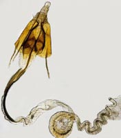 2-4: erste beiden Fotos herkömmliche Einbettung, drittes nicht eingebettet, ♂, Österreich, Niederösterreich, Neunkirchen, Stadtgebiet, leg. Raupensack an Melde (Atriplex patula) 15. September 2010, e.p. 3. August 2011 (Präparation & Mikro-Foto: Peter Buchner)