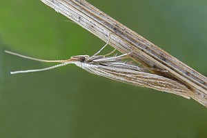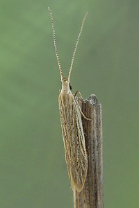 11: unmittelbar nach dem Schlüpfen mit noch zurückgelegten Fühlern, Österreich, Niederösterreich, Sollenau, leg. Raupensack an Gänsefuß (Chenopodium album) 26. September 2012, e.p. 29. August 2013 (leg., cult., det. & Foto: Peter Buchner)