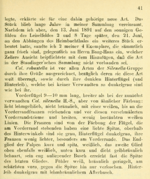- Patzak, H. (1976): Zur Identität der Arten um Coleophora silenella Herrich-Schäffer, 1855. — Deutsche Entomologische Zeitschrift 23 (1-3): 157-164. [Digitalisat und PDF-Download auf onlinelibrary.wiley.com]