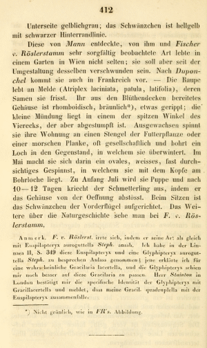 - Fischer von Röslerstamm, J. E. (1834–1843): Abbildungen zur Berichtigung und Ergänzung der Schmetterlingskunde besonders der Microlepidopterologie als Supplement zu Treitschke's und Hübner's europaeischen Schmetterlingen, mit erlaeuterndem Text: I-V, 6-304, Alphabetisches Register mit Synonymen [i]-[iv], pl. 1-100. Leipzig (Hinrichs). — Digitalisat von Google Books im Viewer der Hathi Trust Digital Library: [253], [pl. 86].