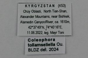 - Bezug der Nomen-novum-Indikation: Toll, S. (†) & H. G. Amsel (1967): Coleophoriden aus Afghanistan (Lepidoptera: Coleophoridae). — Beiträge zur naturkundlichen Forschung in Südwestdeutschland 26 (3), 2. Afghanistan-Heft: 5-16, pl. 1-5. Karlsruhe. (Ex libris Jürgen Rodeland)