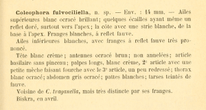 - Lectotypus-Festlegung: Baldizzone, G. (1979): Contributions à la connaissance des Coleophoridae, XIII. Les espèces de Coleophoridae décrites par Pierre Chrétien. — Alexanor 11 (3): 111-130, pl. XIV-XXXVII.