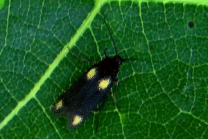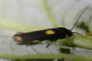 Die Art wurde mittlerweile auch nach Nordamerika verschleppt. Landry et al. (2013: 38) schreiben zum dortigen Vorkommen: "USA: Pennsylvania, Montour Co., near Danville, 10 specimens reared from larvae feeding on Chenopodium album in July 2011 (CNC). This is the only reported locality for North America." Konkreter dann (S. 39): "The species was first discovered in Pennsylvania in 2011 by Jesse Babonis and Steve Johnson who reared it from Chenopodium album growing alongside a house. It was easily identified from its external morphology and confirmed by genitalia examination and comparison with specimens from Japan (CNC). Currently there are no barcoded specimens of sinensis from the Old World. However, the species, which is native to Asia and the East Palearctic, has been reported in Europe since the early 1970s (Sattler 1971) and is now known from several parts of Europe (Bengtsson 1997; Malkiewicz & Dobrzanski 2011). It is not known whether North American occurrences originated from Europe or Asia; however, the fact that they have yellow forewing spots, which are lacking in European specimens, suggests that they may have originated from Asia." - Diese Argumentation ist schnell hinfällig geworden. Schaut man sich 12 Jahre später die Nachweiskarten auf [mothphotographersgroup.msstate.edu], [butterfliesandmoths.org] oder auch [iNaturalist] an, wird erkennbar, dass sich die Art in den USA rasch westwärts ausgebreitet hat und dort längst fest etabliert ist.