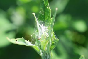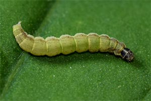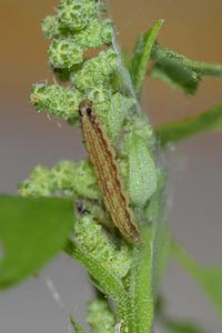 Takács & Szabóky (2009) melden eigene Raupenfunde in Ungarn an Chenopodium album. Landry et al. (2013) nennen ebenfalls Chenopodiaceae als Raupennahrung, konkret die beiden besonders häufigen Arten Chenopodium album (Weißer Gänsefuß) und Atriplex patula (Spreizende Melde).