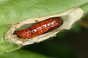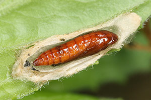 1-4: (1: Puppengespinst), (2-4: Puppe darin), Schweiz, Bern, Courtelary, 1350 m, 1. Juni 2009 Raupenminen an Epilobium alpestre; Falter e.l. ab 13. Juni 2009 (leg., cult., det. & fot.: Rudolf Bryner)Forum