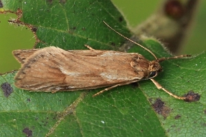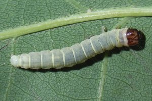 Schütze (1931) schrieb zur Raupe: "An Quercus, Fagus, Alnus und vielen anderen Laubhölzern zwischen zusammengesponnenen Blättern." Auf [ukmoths] ist zu lesen: "Oak (Quercus) and bilberry (Vaccinium myrtillus) are the preferred larval foodplants in this country." Unsere obige Liste von Laubgehölzen ist sicher noch lange nicht vollständig.