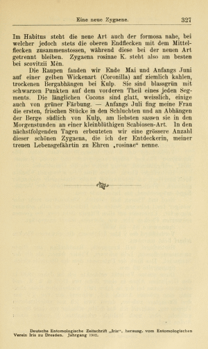 - Erstbeschreibung: Korb, M. (1903): Eine neue Zygaena. — Deutsche entomologische Zeitschrift Iris 15 (2): 326-327.