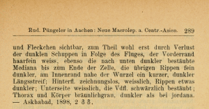 - Erstbeschreibung: Püngeler, R. (1900): Neue Macrolepidopteren aus Central-Asien. Fortsetzung. — Deutsche Entomologische Zeitschrift Iris 12 (2): 288-299, pl. VIII-IX.