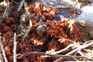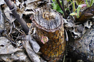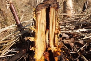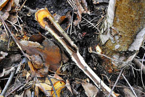 1-2: Belgien, Aalst, Befallsbild an geschnittener Schwarzerle (Alnus glutinosa ), 27. Oktober 2015 (det. & Fotos Ruben Meert)
