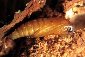 Die krebsartigen Tumore an den Weiden sollen vom Bodenbakterium Agrobacterium tumefaciens hervorgerufen werden. Solche Tumore sind offenbar gute "Einstiegsstellen" für verschiedene Insekten, deren Larven sich im Holz oder unter der Rinde von Weiden entwickeln. Bei der Zucht von S. formicaeformis habe ich genau so oft auch den Bunten Erlenrüsselkäfer (Cryptorhynchus lapathi) oder den Kleinen Pappelbock (Saperda populnea) erhalten. Die Beschaffenheit des Bohrmehlauswurfs ist aber unterschiedlich und verrät ziemlich zuverlässig, welcher Verursacher am Werk ist: