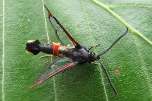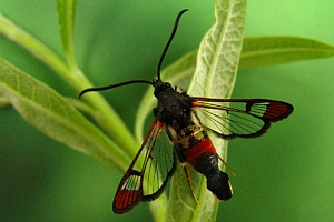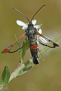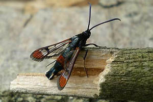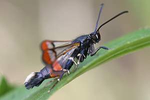 Synanthedon formicaeformis ist eine der häufigen Arten der Familie. Man kann sagen, dass praktisch alle Weidenarten in allen möglichen Biotopen genutzt werden können. Beachtlich auch, dass die Art die komplette Pflanze nutzen kann: In Zweigen in Anschwellungen und krebsartigen Stellen, in den im Vorjahr abgeschnittenen Zweigen, in Stämmen jeder Stärke, unter der Rinde oder mitten im Holz. Einzige Voraussetzung ist eine Schadstelle, an der das Weibchen seine Eier ablegen kann. Wenig anspruchsvoll, feuchte und trockene Stellen, auch mitten in Berlin auf dem Parkplatz eines Supermarktes ist die Art zu finden. (Autor: Frank Rämisch)