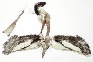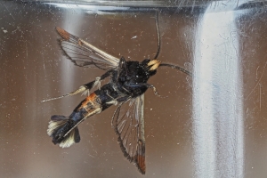 Bei frisch geschlüpften Männchen ist das Abdomen noch kompakt und nicht lang und schlank geformt, weshalb der Eindruck eines Weibchens entstehen kann. Letztere haben aber von der Seite betrachtet einen viel kompakteren Afterbusch." [Text: Daniel Bartsch]