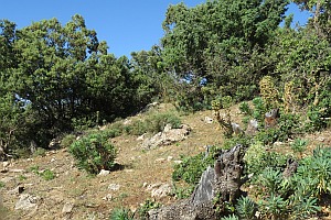 1: Habitat mit Steineiche (Quercus ilex), Marokko, Ain Sfa, 1170 m, 29. Mai 2019 (Foto: Rudi Goosens)