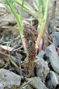 Die Raupe lebt oft zu mehreren in der Wurzel von Onobrychis-Arten und kann im Feldbau schädlich werden. Çiftçi et al. (2016) melden Onobrychis atropatana als neue Nahrungspflanze in der Türkei.