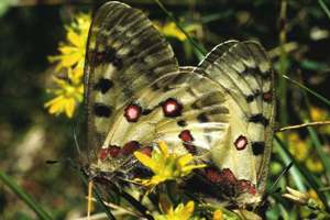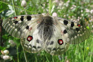 - Parnassius apollo (Linnaeus, 1758) (Falter und Raupe)