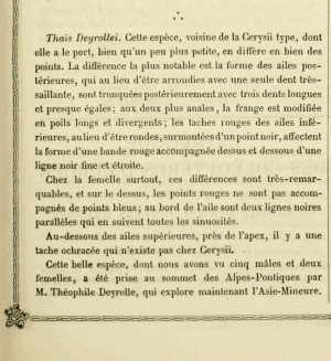 - Erstbeschreibung: Oberthür, C. (1869): Thaïs Deyrollei. — Petites nouvelles entomologiques 1 (2): 7.