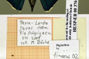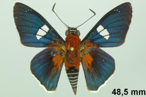 Bell (1931: 236) beschrieb die Art nach einem einzigen Falter: “Holotype male, Pebas, E. Peru (Godman-Salvin Coll. 1912—23, Yanguna cometes Cramer), in collection of the British Museum.”