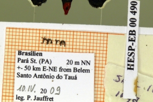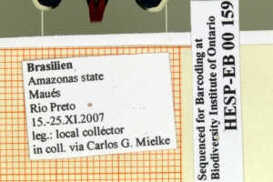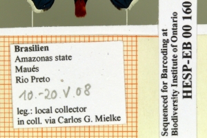 1-3: Holotypus ♂, Daten siehe Etiketten (fot.: Carlos Mielke, Fotos bearbeitet: Michel Kettner), coll. Departamento de Zoologia, Universidade Federal do Paraná, Curitiba, Paraná, Brazil.