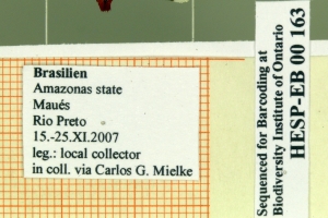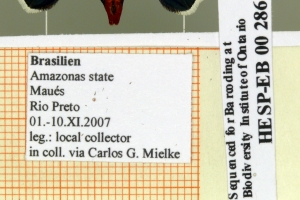 1-3: ♀, Daten siehe Etiketten (fot.: Carlos Mielke, Fotos bearbeitet: Michel Kettner), coll. Departamento de Zoologia, Universidade Federal do Paraná, Curitiba, Paraná, Brazil.