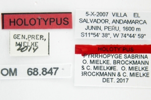 - Erstbeschreibung: Mielke, O. H. H., Brockmann, E. & C. G. C. Mielke (2022): Hesperiidae II: New World Pyrrhopyginae, detailed text. — In: E. Bauer & T. Frankenbach (ed.) (2022): Butterflies of the World 49: 120 pp. Keltern.