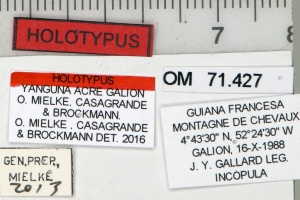 1-3: Holotypus ♂, Daten siehe Etiketten (fot.: Carlos Mielke, Fotos bearbeitet: Michel Kettner), coll. Departamento de Zoologia, Universidade Federal do Paraná, Curitiba, Paraná, Brazil.