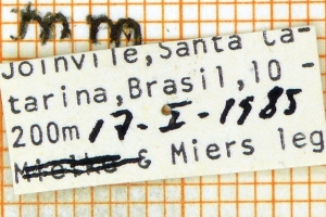 1-3: ♀, Daten siehe Etiketten (fot.: Ernst Brockmann, Fotos bearbeitet: Michel Kettner), coll. Departamento de Zoologia, Universidade Federal do Paraná, Curitiba, Paraná, Brazil.