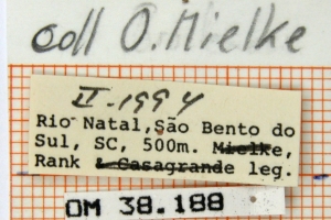 4-6: ♀, Daten siehe Etiketten (fot.: Ernst Brockmann, Fotos bearbeitet: Michel Kettner), coll. Departamento de Zoologia, Universidade Federal do Paraná, Curitiba, Paraná, Brazil.