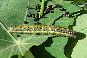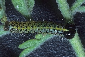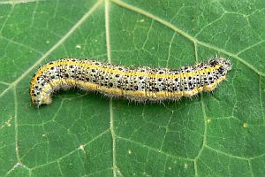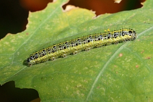 Die Grundfarbe der Raupe kontrastriert stärker zu den gelben Längsstreifen als bei der von P. brassicae und die schwarzen Flecken sind kleiner. Nach Wiemers (1995) fehlt der Raupe von P. cheiranthi das für die P. brassicae-Raupe typische schwarze Band auf der Kopfkapsel.