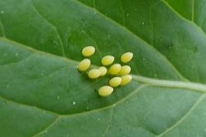 Das Ei ist ein typisch kegelförmiges Pieriden-Ei. Im Gegensatz zu P. brassicae legt das ♀ von P. cheiranthi die Eier in viel kleineren und offeneren Gruppen von 2-15 Eiern, zuweilen auch einzeln, meist an die Blattunterseite ab. Nur an sehr großen Blättern, z. B. an Kohl, werden z. T. auch größere Gelege abgelegt. Nach Eitschberger & Wiemers (1991) hat das Ei von P. cheiranthi nur 13 Längsrippen, gegenüber 17-18 bei P. brassicae.