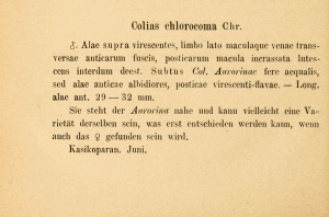 - Eckweiler, W. (2003): Eine neue Unterart von Colias chlorocoma Christoph, 1888 aus dem iranischen Talesh (Lepidoptera: Pieridae). — Nachrichten des entomologischen Vereins Apollo, Neue Folge 24 (3): 147-152. [PDF auf zobodat.at]