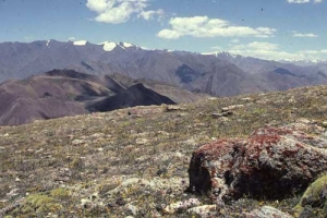4: Indien, Kashmir & Jammu, Ladakh, 5000 m. Im 'Tal' unten das Nimaling-Plateau (4600 m), 17. Juli 1995 (fot.: Rudolf Bryner)