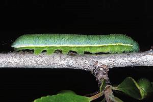 1: Spanien, Kanarische Inseln, La Palma, Barranco del Agua, Raupenfund an Rhamnus glandulosa im August 1988 (Zuchtfoto: Martin Wiemers), det. Martin Wiemers