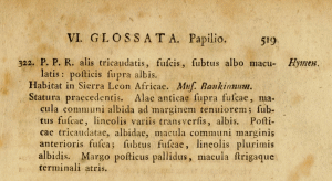 - Erstbeschreibung: Fabricius, J. C. (1775): Systema entomologiae, sistens insectorum classes, ordines, genera, species, adiectis synonymis, locis, descriptionibus, observationibus. 1-832. Flensburgi et Lipsiae (Officina Libraria Kortii).