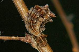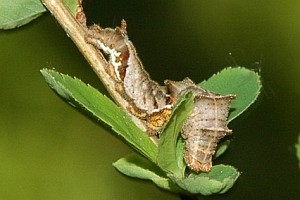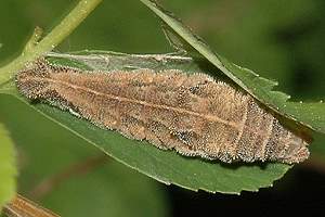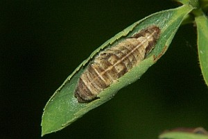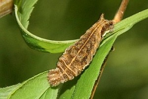 Die Art bildet im Jahr nur eine Generation aus, die je nach lokalem Klima und Höhenlage vereinzelt schon ab Ende Mai, meist aber erst ab Mitte Juni bis Mitte August fliegt. Das ♀ legt seine Eier einzeln an die Blattoberseite von Wald-Geißbart (Aruncus dioicus), Echtem Mädesüß (Filipendula ulmaria) und verschiedenen Spierstrauch-Arten (Spiraea-spp.), hierunter auch angepflanzte Ziergehölze. Die schlüpfende Raupe fertigt an der Blattspitze eine kleine Blatttüte und verlässt dieses Sommerquartier nur zum Fressen. Nach der zweiten Häutung wird im Oktober ein größeres Überwinterungsgehäuse ebenfalls aus einem Blatt gefertigt. Im April verlässt die Raupe dieses wieder und lebt nun frei, aber durch ihre bizarre Form bestens getarnt, an der Nahrungspflanze. Sie verpuppt sich im Mai oder Juni.