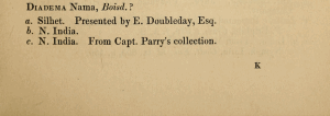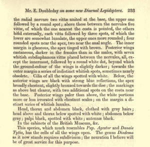 Doubleday hatte den Namen bereits ein Jahr zuvor als nomen nudum publiziert: