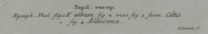 - Erstbeschreibung: Esper, E. J. C. ([1780-1786]): Der europäischen Schmetterlinge Ersten Theils zweyter Band welcher die Fortsetzungen der Tagschmetterlinge von Tab. LI. Contin. I – Tab. XCIII. Contin. XLIII. und die Bögen [A] – [Bb] enthält: 1-190, pl. LI-XCIII. Erlangen (Wolfgang Walther).