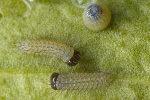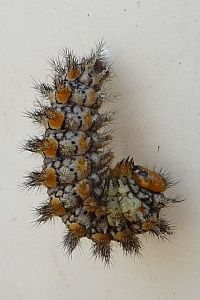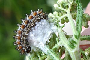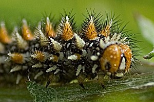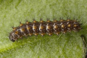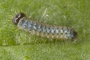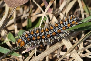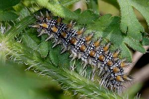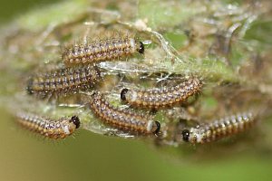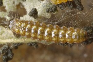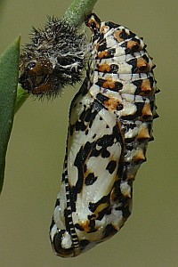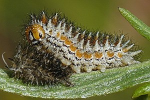 Die Raupe lebt nicht in einem Gemeinschaftsgespinst sondern einzeln. Sie überwintert jung bis halb erwachsen und häutet sich insgesamt sechs oder sieben Mal, was für Tagfalter recht untypisch, für Melitaeen aber normal ist.